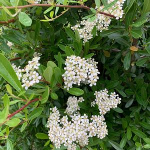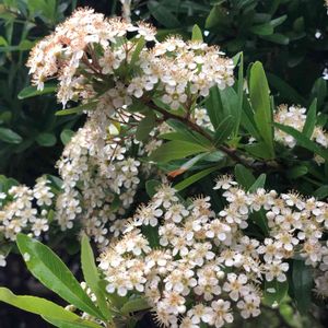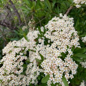 ピラカンサスの白い花が咲いていました。 別名 トキワサンザシ 赤い実がなる秋にはヒヨドリが食べにきます。