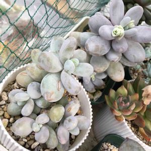 名前不明で狩ったパキフィツム ✨ 月美人より淡い色で少し平べったい感じです。 下のチビ苗はブルーラグーンです。