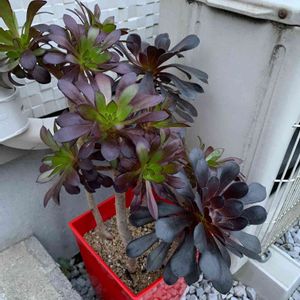 こんばんは~🤓🌌 今日も天気回復せず👟ウオーキング🚶に出かけられず😆😂 🏡我が家の🖤黒法師(アエオニウム属)🖤さん達が綺麗に色付いたので紹介します(鉢植え草丈90cm)😃 🏡我が家の庭の住人紹介😍 R5年4月26日撮影📷