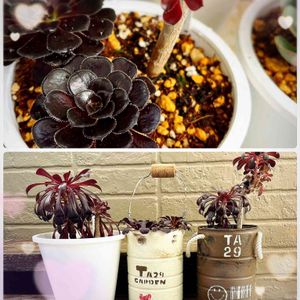 こんばんは~🤓🌌 今日も天気回復せず👟ウオーキング🚶に出かけられず😆😂 🏡我が家の🖤黒法師(アエオニウム属)🖤さん達が綺麗に色付いたので紹介します(鉢植え草丈15cm)😃 🏡我が家の庭の住人紹介😍 R5年4月26日撮影📷