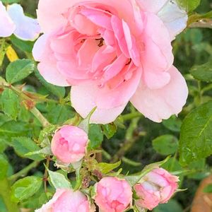 たまに行くファミレスの玄関、🅿️周りは薔薇の園 🌹🌹🌹で、さすがに花も少なくなってきました が、この時期に綺麗に咲いてる薔薇は🌹とても 目を引きますね❣️ こんな可愛い🌹🌸🌸🌸が咲いていました💗 名前を見つけました! 🌹 ボニカ’ 82 🌹 のようです🌸 緑の葉が小さめ、艶無し、花は中輪八重房咲き! 半横張りのシュラブ樹形、1.4m 修景バラ 返り咲き〜四季咲き 実も楽しめる うどん粉、黒点病に強い 1981年 フランス🇫🇷 メイアン 色はサーモンがかったピンク〜ソフトピンク、良い香りです💗 1982年 ADR受賞 1987年 AARS受賞 2003年 第13回世界バラ会議🇬🇧大会で殿堂入り