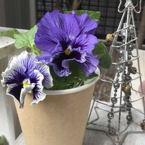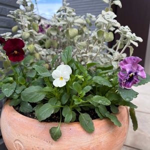 夫が、パンジー、ビオラを一鉢ずつ植え込んでくれました☺️ 寄せ植えは、嫌いみたいです😅