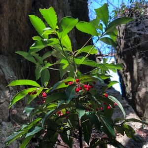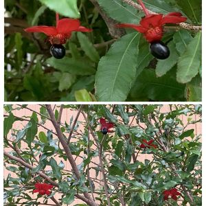 おはようございます😃 久しぶりに明るい朝です。 しかし、昨日までの雨のために湿度が高くて、蒸し暑いです。 可愛らしい木の実に出会いました。 オクナセラルタ、別名ミッキーマウスの木です。 赤と黒のコントラストからミッキーマウスが連想されたのでしょう。 私は羽根つきの羽根を連想します。 下の写真を見ると下の玉の部分が緑色です。 それが次第に真っ黒に変わります。 春に黄色い花を咲かせて、それがこんなふうに、ガクが真っ赤、実が真っ黒に変わります。 とても不思議です。 花が目立って蝶や虫を呼ぶのは分かりますが、実ガクが鮮やかなのはどんな理由があるのでしょう。🤔