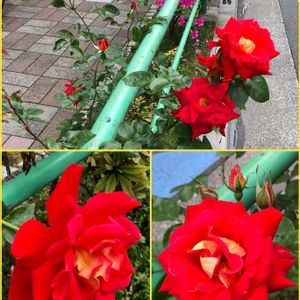 玄関を出て50歩の歩道の横で咲いています。 近くで素敵なバラ🌹が見れて嬉しいです❣️