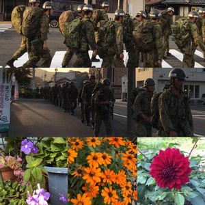 陸上自衛隊金沢駐屯地 自衛隊100キロ 徒歩訓練 約30キロのリュックサックを背負い 今回は 海岸沿いの地形を把握しながら 黙々と ゴールに向かっていました。 今日 災害が多くて出動することが多々あり ます 本当にご苦労様です🙂 街道で皆さま 応援の拍手でお迎えしました👏 二度咲きのダリアがキレイに咲きました 右端の花はストレプトカーパスで いいのか?