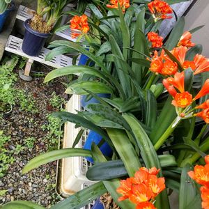 うちの牡丹·見てって!! ご近所さんが 昨年·花を見ないうちにカットされ ガッカリしたのと言ってたので 私·牡丹よりコチラが気になって なんと‼️ 🟠色の花がズラリ‼️ これは一部‼️ L字型の軒下に20鉢はあるか 全て🟠色の君子蘭コーナー 鉢を移動するとカタツムリの赤ちゃん👶 最近よく見かけるゃ