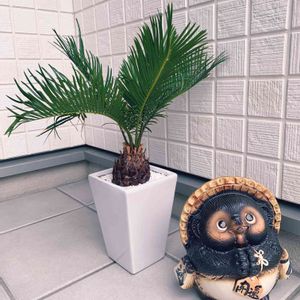 おはようございます! 今日も一日雨降りですね⛈ ウチのソテツと信楽焼のタヌキくんに行ってきます!