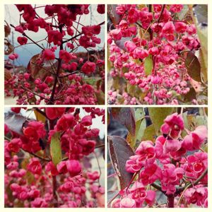 鈴なりに実を付けたマユミ 可愛い~💝 これは種と言うべきなのかな?😅 今日の朝撮りました 薄曇りで今にも雨が降りそうです