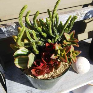 一昨日夢中になり作成💕 上手くできない寄せ植え!でもやっぱり可愛い多肉達😊愛犬似の置物は中々見つけられないからあったもの😁✨