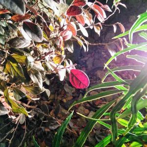 真っ赤なヒューケラ 個性的なコロキア 写っていませんが ハツユキカズラ ディゴンドラシルバーフォール 2ヶ月ほど前に寄せ植えたもの。 忘れていました。 球根を入れなくては!