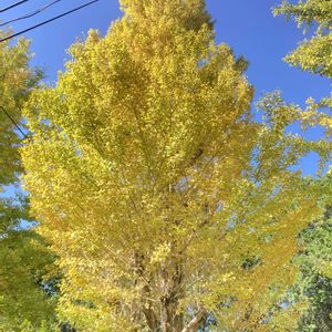 イチョウの黄葉です。 今、黄葉がきれいに見られます💕 黄色い🟡葉が太陽の光✴️を受けて、光っています🎶😃