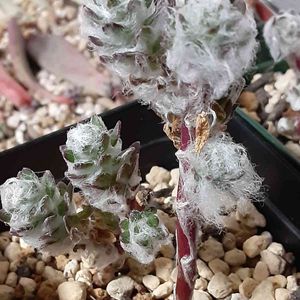 ウェルデルマニーちゃん。冬に室内に取り込んでしばらくしたら根本から抜けたので何事かと思い土をぶちまけたら根切虫が三匹いて根っこを全部食べられていました🐛なので根っこが無いまま冬越ししました😅 春まで頑張って生きてくれたので短くして挿し木に。そして2鉢に。 後ずっとなんとなく欲しかった高砂の翁を購入しました。 大きいのをお店で見て気になったものの名前を忘れてずっとネットで調べて、多分高砂の翁だったなと。違ったりして!