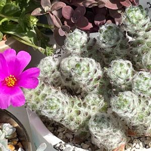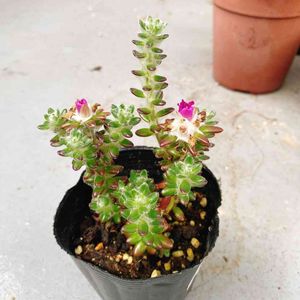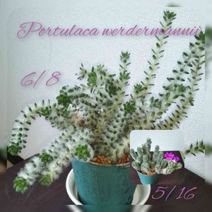 久し振りに仲間が増えました🎶 以前から見かけていたけど 何だかやや徒長+白いモワモワが 蜘蛛の巣とか苦手な虫の糸みたいで 名前すら見てあげていませんでした でもこの間、Cさんがお花が咲いた picをあげられていて🌸 とにかくお花が可愛い🌸😍 誰にも買われずに残っていました😍 名前を確認したらビンゴ💖 わーい。わーい😍 徒長しているのでカットして挿し木。 でもやっぱりモワモワの触り心地が 苦手です😭🤣 多肉だ‼️と思っているのにかなり ドキドキ、何も出て来ないよね❓ そんな自分が笑えて仕方ない🤣 新しい仲間はウェルデルマニー ウチに全くいなかったタイプです🤣 ポーチュラカ属お花の形もソックリ🌸