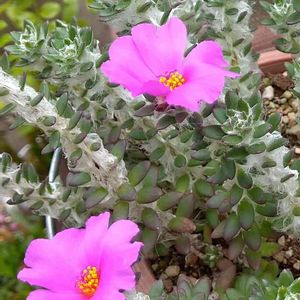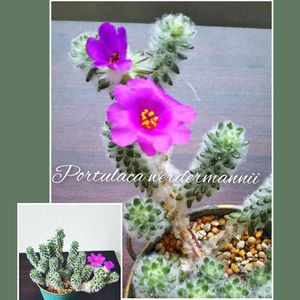 ポーチュラカウェルデルマニー、今日3つも同時に咲いた🥰 私は仕事で見られず、母に頼んで画像だけ鑑賞。 可愛すぎてにやけちゃう😍😍