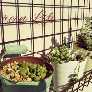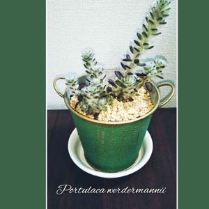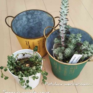 ポーチュラカアルデマニーをお気に入りの鉢へ🥰😍 グリーンネックレスと並べ置きして毎日ウキウキです😍