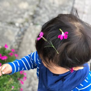 孫ちゃん2号は花男子…🌸 バーベナを触る手も優しすぎ。