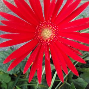 赤いガーベラ❁ 冬に、赤く、パッと見開いて咲いてる姿は目立つ❤️ でも、なんかいつ見ても咲いてる気がする😃 地植えで放ったらかしっぽいのに、スゴイ😆⤴️🎉