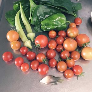 おはようございます😃☂️ 一昨日の収穫🍅🥒🥬🫑 トマト🍅はそろそろ終わりかな〜。 お友達からの朝顔の📸❣️ 種を撒くのが遅かった🌱のでやっと窓を覆いだして 涼しげになりましたネ💞。 赤い薔薇🌹が秋咲きに入って次々に咲いています♪ スズメのお風呂🛁 今朝は雨☂️なので来客無しです😅。
