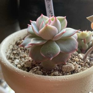 おはようございます😊 先週、また、ナフコに行き、立派な多肉さんを発見💡 早めにお迎えしなくては…⁉️と思い、少々、予算オーバー💸でしたが、お迎えしました。 エケベリア属 シャキノ😍 大きめの葉が、ふっくらと、そして、爪がピンク🩷で、とても可愛い。 2枚目のpicだと良く分かると思います。 今以上に、可愛く成長してね🤗💕