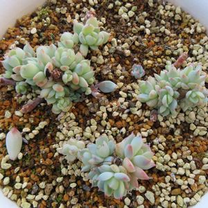 ピーコッキー(右上)と養老(左)。ネットや図鑑で調べてもこの2種の関係がいまいちわからない。ピーコッキーの和名が養老という説明も見たことがあるけど,どう見ても別物。 見た目はピーコッキーの方が白くてきれいだけど全然子株ができない。逆に養老は冬でも緑のままだけどすぐに群生化する(意外に爪はきれい)。 ちなみに右下の鉢は2年前に巨大化したルンヨニーの子株。ルンヨニーもすぐに群生化する。