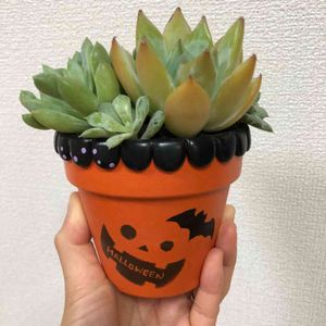 土曜日にGETしたmegさんのハロウィン鉢に早速寄せ植え❤️ こんなにギュウギュウに寄せ植えしたの初めて😁 これから紅葉してミドリンじゃなくなるはず👍🏻 楽しみ〜😊