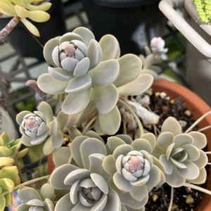 かなり前にピンクベリーが中々ピンクになりませんと投稿した事がありましたが… 続報が遅れておりました🙇♀️ 結果、あのスリット鉢(4号)に植えたものは紅葉してません😂 なぜか、2枚目のように茎だけが濃いピンクに染まっております😅 3枚目以降は、2号の黒ポットに植えてた苗が今年の初春に色づいていたのをカットして、寄せ植えに使ったものです。 ただ、ピンクとは言い難く、白っぽくほんのちょっとだけ葉の縁がピンクかな🤔と言う感じです。 もっとピンクに染まったピンクベリー🩷が見てみたいですが、皆さんのは⁇どうですか?
