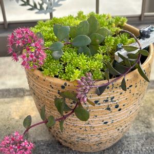 やっとできた✨ MAIさんの鉢にセダムの寄せ植え😍 レッド系とグリーン系のセダム🌱