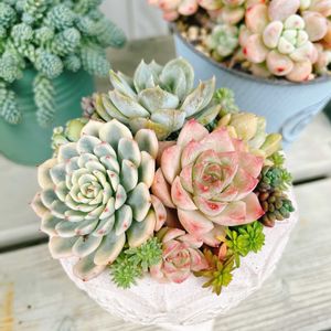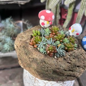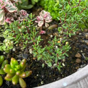 真ん中のツンツンしたセダムのような植物の名前が分かりません🥲どなたか知っていたら教えていただきたいです🌱