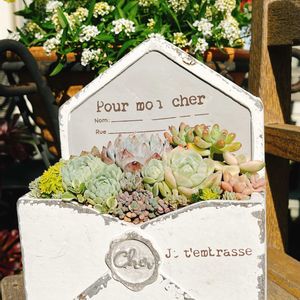 オープンしたてのJAの併設カフェに行くと… グリーンサンタさん作の多肉の寄せ植えが…Σ(゚゚*)!? みっしり詰まっていて可愛い グリーンサンタさんのセンスを見習いたいです✨️ 至る所に多肉などのグリーンがあったり、アウトドア風の椅子を使ったりしていてカフェも良かったです 多肉を買うこともでき、新たに「光オブツーサ」、「パリダ」、「パープルヘイズ」をお迎えしました(左右の子たちの名前は忘れました…(*‘ε‘ *)) ずっと前からハオルチアが欲しかったので買えて満足♪