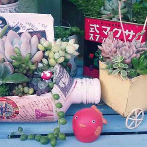 ひっさしぶりに寄せ植え(ある物で補ってるので適当)やってみた! オパリナ、姫秀麗、ペンデンスはこの前咲くやこの花館で買ったもの! あとはお家にあった子たち! 今日は久しぶりに多肉いじりできて幸せ! グリーンペット増やしてるところに一株枯れてしまってたり女雛が一つの葉だけジュクジュクに腐ってたりちょっと忙しさにかまけて放置してしまってたなぁーと反省。 姫秀麗はずっと欲しかったので増えてほしい! オパリナは持ってるけど状態がよろしくないので保険で買ってみた! 左のリメボトル?はずっとやりたかったみどりのまとめで見たのを真似させてもらいました!😆 多肉棚もこの前第二号作って青色の絵の具があったから適当に塗りました笑