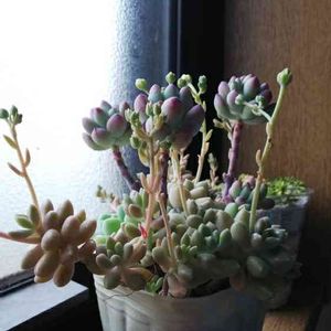こんにちは(*´ω`*)ノ)) 寒いんじゃーーこらーーーと空に向かって毒づく本日( ´ ` ) 最近調子に乗って切りまくってるので、寒さと雨で切り口やられたら辛いし、セダムすら外に出せません( ´ ` ) あっという間に徒長しちゃうんですよね… 早くすっきり春になってほしいものです(。・ˇ_ˇ・。) 写真は昨日息子に買ってもらったでかセダムミックス。 どうしたらこんな状態に育てられるのでしょうか(*-ω-*) 多分ロッティと姫秀麗が入ってて、あとは木立になってるピンクのかわいい子が誰だかわからないんですよね〜(;´Д`) 同じポットがまだまだたくさんあったからまた買いに行きたいなー(*´Δ`*)