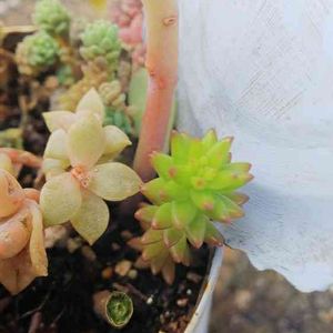 リトルミッシーがもりもり増えてきてるー!どうしようかと悩んでたところに昨日ちえさんの子持ち蓮華とリトルミッシーの素敵なコラボ寄せをみてよし真似しようと意気込んでたら、、、 風邪が悪化して咳のしすぎてぎっくり腰?に😅 ヘルニアかもしれないねーとお医者さんに言われたのが約七年前ぐらい😣 その時の仕事柄仕方なかったけど10代で腰痛持ちはきつかったなぁー(・o・) 腰痛がマシになったら多肉事したい! 今すぐにでもしたい! 痛すぎるー 買ったまんまのポット苗の子がたくさんいるから待っておくれよー! 班入りなんちゃらって子はおまけでお店の人がくれたものです! この子もすでにふさふさです! セダムちゃんはかわいいなぁー 最近セダムがまた自分の中で好きでたまらない!