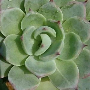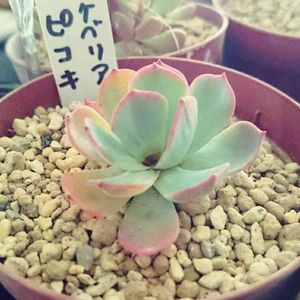 成長点が消えてしまったエケベリアのピンキー。脇に子株もないし、この先どうなるんでしょう。いい色を保っているだけに無事成長してほしい。