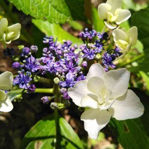 品種わからないんだけどせっかちなアジサイだよ 装飾花開ききってないように見えるんだけど両性花咲いてるよね😅白と紫のコントラストが綺麗です☝️