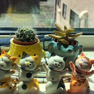 多肉初心者なのでまだ寄せ植えは不安なため、ちいちゃい子猫ちゃんに寄り添ってもらってます💕 アドバイス通り半日陰で見守り中🌵 それにしても1年草のお花に慣れた身体ではこの多肉の動きのなさにびっくり。君たちそんなんで生まれ故郷では野生で生きていけてるの??