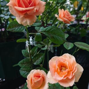 今日のオレンジ系の子たち🌹 ←杏奈…よく咲いてくれるね🎵 ↗️ラパリジェンヌ…いい色❤️ ↘️かおりかざり…お久しぶり~🎵