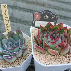 フォロワーさん 「ちゃきちゃん」 がみたいという。。 どちらも 「メキシコポルデンシス」 並べても色からして違うよね😅💦 どちらも可愛いから許すけど。 右側、、もぅ少し葉もいで 綺麗にしようかな。。💦💦