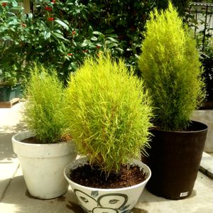 コキアちゃんです。 立秋も、過ぎ 暦の上では秋に…。 コキアちゃんの葉っぱが、薄っすら色づいて来ました。