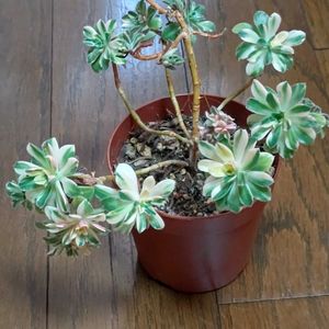 今日は暖かくいい天気☀️ アエオニウムの愛染錦 今が成長期🤗 子株も大きくなってきて、形が良くなってきてる🤩 冬支度間際💦 いっぱい太陽浴びて大きくなってね😁