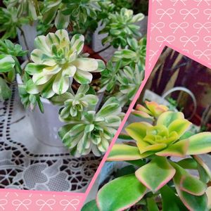 アエオニウム *愛染錦💚♡ 細いながら枝振りと斑 入りの葉が綺麗 *夕映え💚💗 ほんのりピンクで可愛い