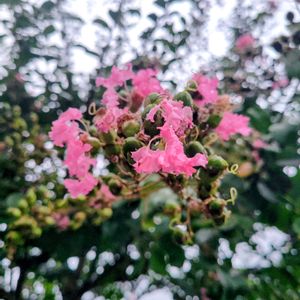 おはようございます·͜· ❤︎🌱✨ 9月11日(木)☔☁30℃予報 朝雨が降ってない間に🤳 🏷木曜日は木に咲く花 🏷木曜日は木の実 ①サルスベリの花🌸 まんまる🟢の種??も ②モミジの𓂃🌿𓈒𓏸少し🍁⠜ ③ナンテンの実 ④柿の実まだ💚🍃 ⑤アジサイの花の今⎛˶'ᵕ'˶ ⎞ 今日は☔が降るのかなぁ 昼からは☁ ·͜·♡̥・予報 天気の急変気をつけてお過ごしください(*´︶`*)ノ