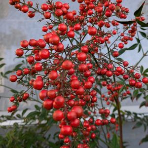 おはようございます。 気持ちよく晴れた朝です。 マンションの花壇にて。 ナンテンの実 赤い色に誘われて、鳥さんが食べてるのかな?