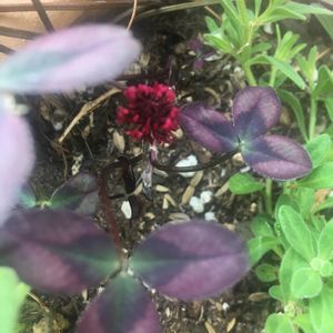 赤いクローバーからは赤いお花が咲くんですね。 この赤クロちゃん、他のクローバーと比べて全然増えないんですが… なんとか生き残った子から、赤いお花を発見‼️ 白とピンクは見たことあったんですが、こんな赤もあるんですね✨