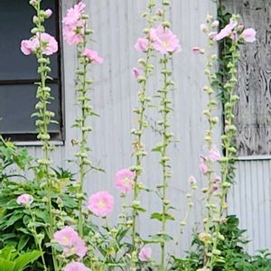 立葵の花が 幹の上まで咲きました 梅雨明けは まだ••••••••です💧💧💧(涙) というか 梅雨入り宣言の後 ずっと 雨降らず これから 線状降水帯••••••も 嫌だな((( ;゚Д゚)))
