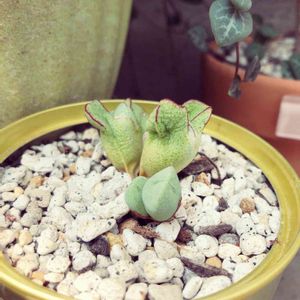 割れ目* 中心からまた新芽が*ˊᵕˋ* ハートの姿で出てくるのが可愛い怪獣クン♡ 100均の子︎☺︎