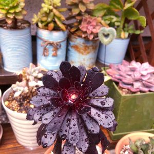立派* 雨の後とてもキレイだったから今日の1枚に✧ 我が家のたったひとつの黒法師さん*ˊᵕˋ* この冬ずっとお外で耐えて一回り大きくなり立派なお姿に♡ そろそろ暖かい日に植え替え予定でーす♪ 100均の子︎☺︎