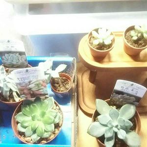 セリアに…プランター系買いに往復一時間╰(‘ω’ )╯三 そのあとダイソーのミニ多肉さん…3つと 木製の便利そうなやつ そして… 補修用のテープ買いにコメリ… 再び多肉植物売り場に… 手持ち多肉さん増えた… 健康な姿の…写真見たら… 頑張ってお手入れして… ぶっくりした、更に…紅葉を観たいからぁ。:+((*´艸`))+:。