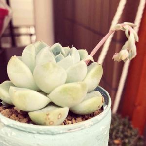 コメリで『エケベリア』っていつも間延びしまくりとかしおしおだったり。 今日は、なんか『あたり』な気がした❣️ 白雪姫の葉っぱ、、、折っちゃったけど、、、💦
