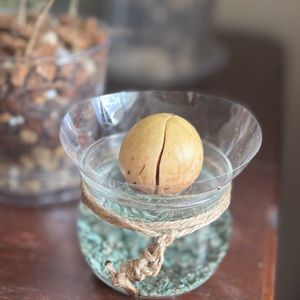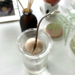 2025/05/14スタート やってみたかったアボガドチャレンジ🥑 誕生日プレゼントにアボカドベースを買ってもらいました🎶 イギリスのILEX studioというメーカーのハンドメイドのものらしくお高いのですが半額😍👍 旦那と町ブラブラ中に見つけて即決でした🎁 週末アボカド買っておいたのに 食べる機会を逃してやっと昨日の晩に食べました。常温でおいてたので実は少し傷んでたけど種は無事👍 育てるには常温に置いてるほうが良かったみたいです👍 そのままより薄皮を剥いたほうがいいとネットに書いてあったので、慎重に剥いてみた 発芽までは2〜3週間とか1ヶ月かかるとか諸説ありますが結構時間かかるらしい 窓際に置いて発根待機中 運良く発根してくれたら 観察楽しそう✨ お店で撮影させてもらった写真のように根っこたくさん生えて欲しいな