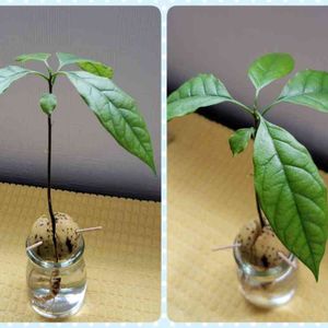 食用のアボカドの種を、水耕栽培で根っこ待ちして3週間で根っこと芽が出たので、 ハイドロコーンに植え替え完了 しかし、芽が枯れかかってる🌱? 復活希望。 素敵な観葉植物になって欲しい